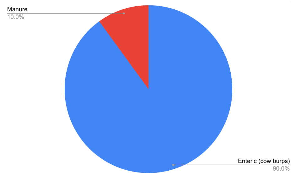 Most cow emissions are from cow burps, which are largely methane.