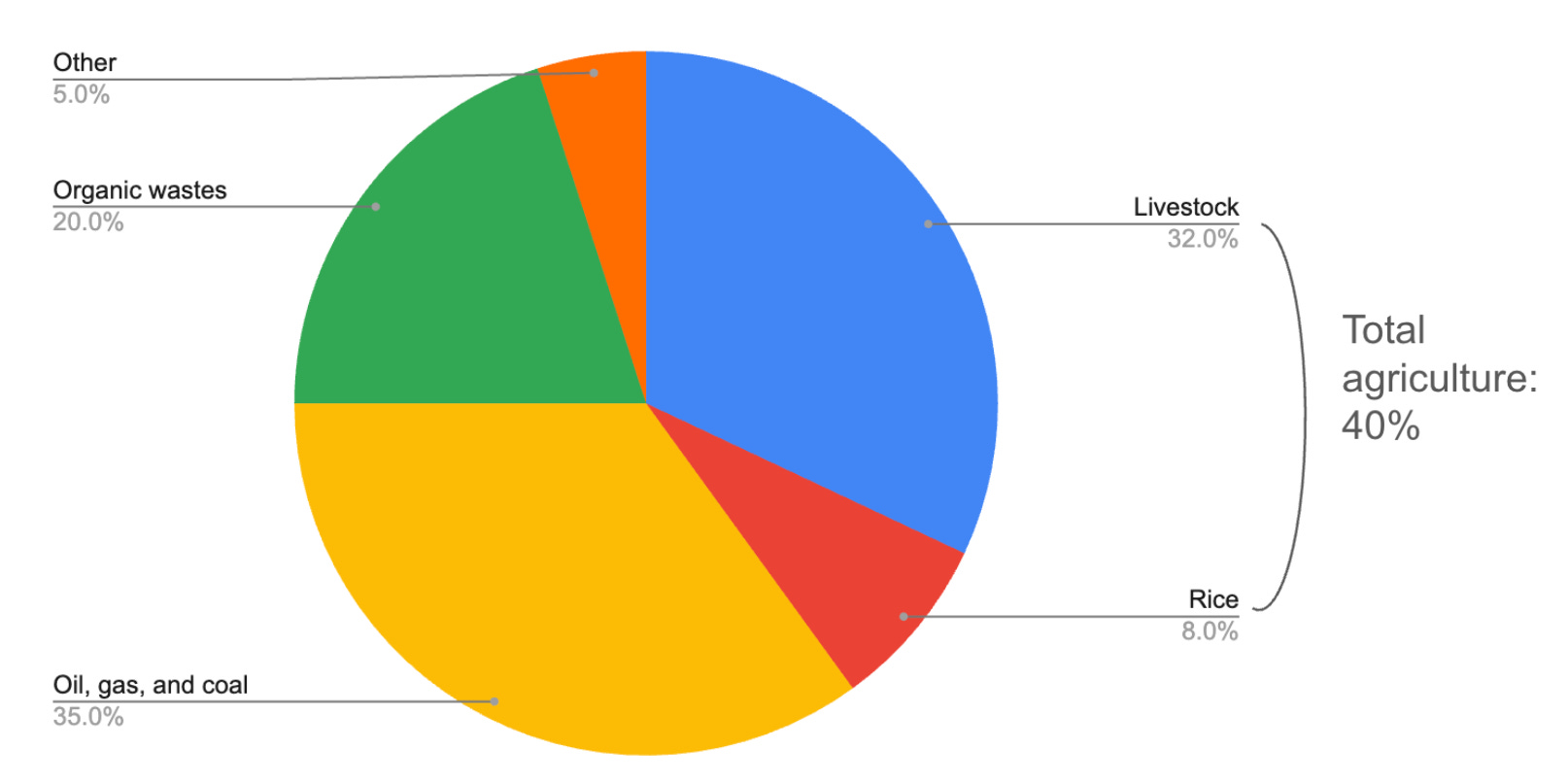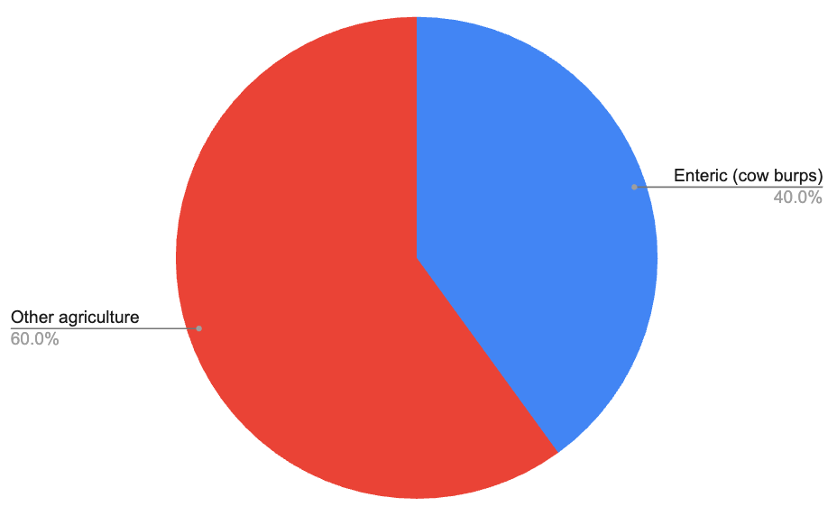 2. Of Total Agriculture Emissions, about 40% come from cow burps, which are referred to as “enteric” or “gut” emissions.