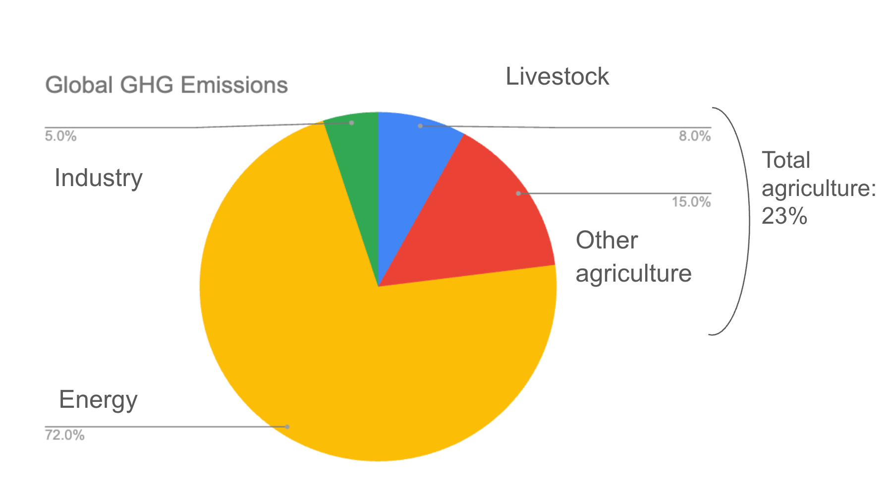 I will explain how beef is connected to greenhouse gas emissions using a series of pie charts and figures. If you want to skip these facts and figures, the bottom line is:
